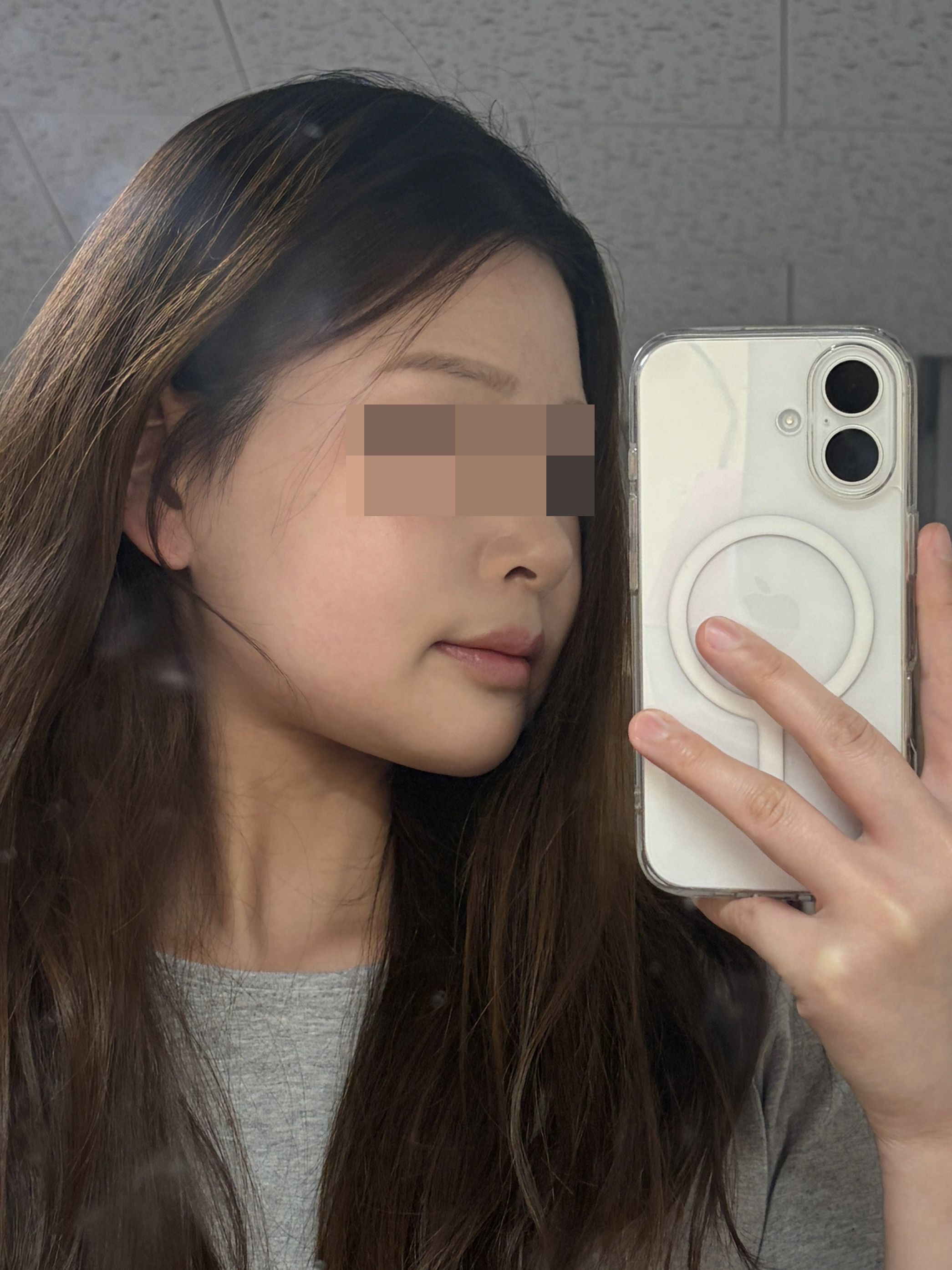 輪郭3点手術も一緒にやったので、もみあげに縫い目があって髪の毛を洗えない状態で行ったので少し申し訳なかったです。